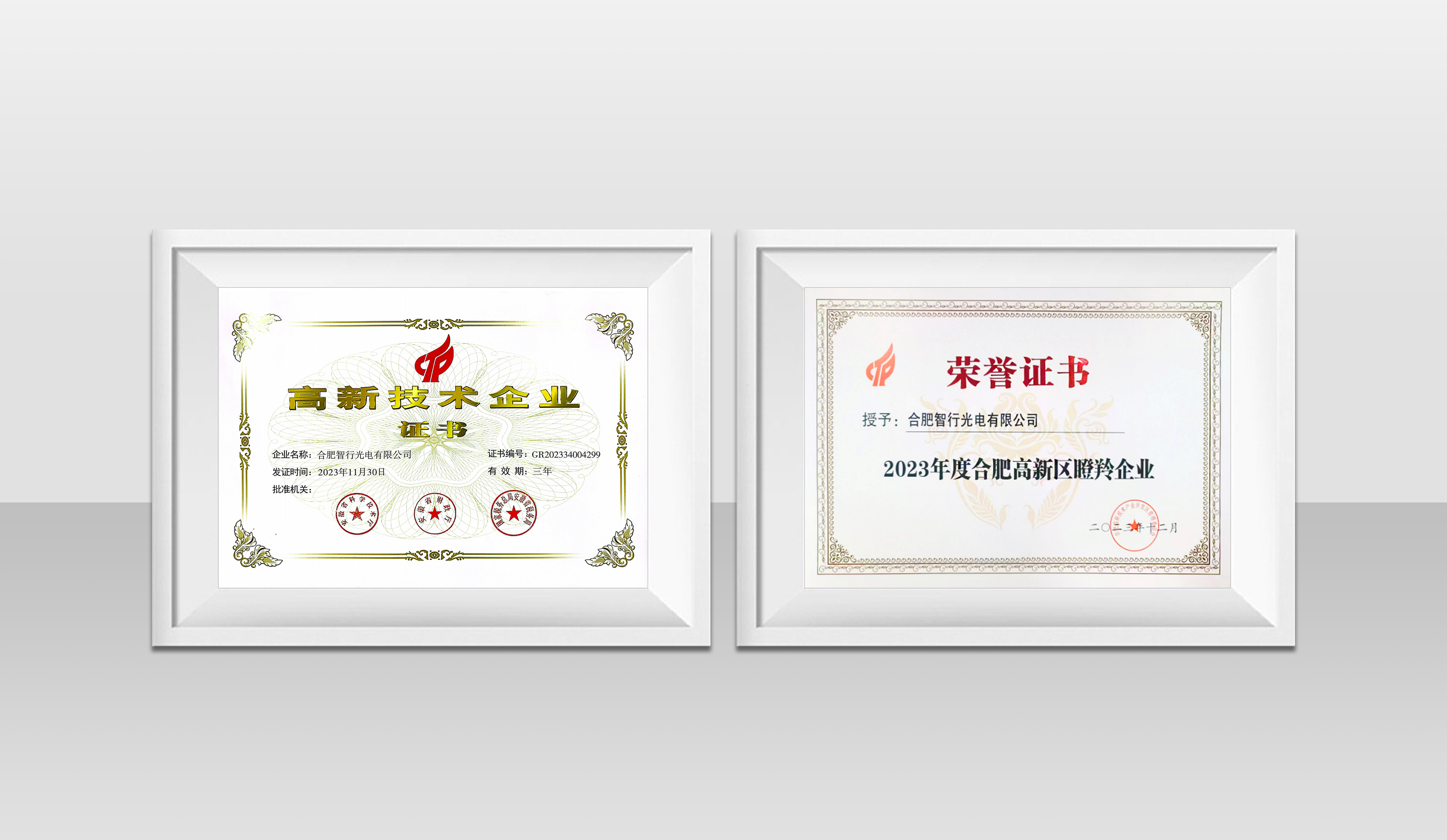 近日,合肥智行光电有限公司通过国家高新技术企业、合肥高新区瞪羚企业两项认定,标志着合肥智行的科研创新能力、科技成果转化能力及成立以来的发展成果、成长潜力获得了高度认可!